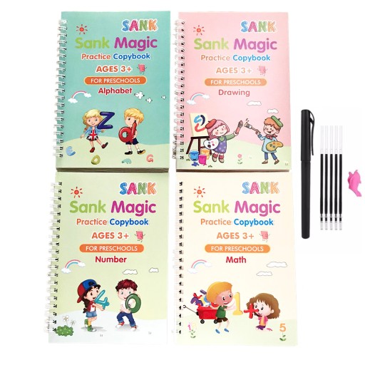 - 4 magiczne książeczki - nauka rysowania, matematyki, liter oraz liczb