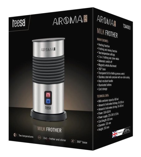 Nic tak nie poprawia humoru z rana, jak pyszna kawa z delikatną pianką. Zwłaszcza jeśli jej przygotowanie zajmuje tylko kilka chwil. Spieniacz do mleka Teesa AROMA F30, w mgnieniu oka pozwoli Ci wyczarować doskonałą piankę mleczną, która nada Twojej kawie magii. Co więcej, dzięki opcji ustawienia zimnej lub ciepłej temperatury, w zależności od nastroju możesz oddać się przyjemności tworzenia cappuccino lub zimnego frappe, a także pysznego kakao lub czekolady dla najbliższych.