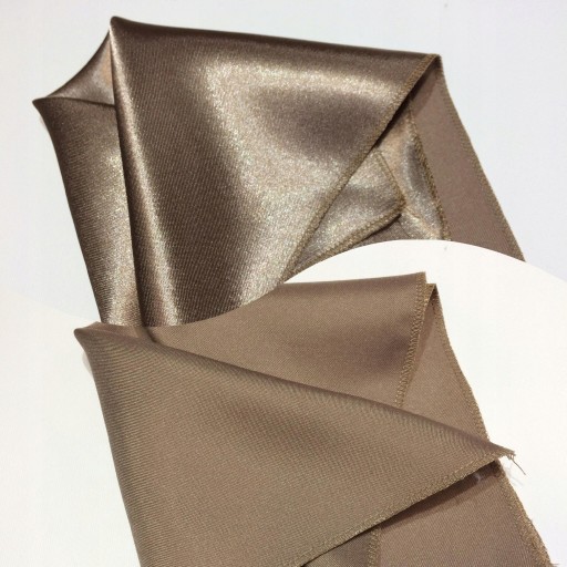 Poszetka po jednej stronie jest matowa, a po drugiej błyszcząca. Brzegi poszetki zostały starannie obszyte. Można ją złożyć w dowolny sposób.