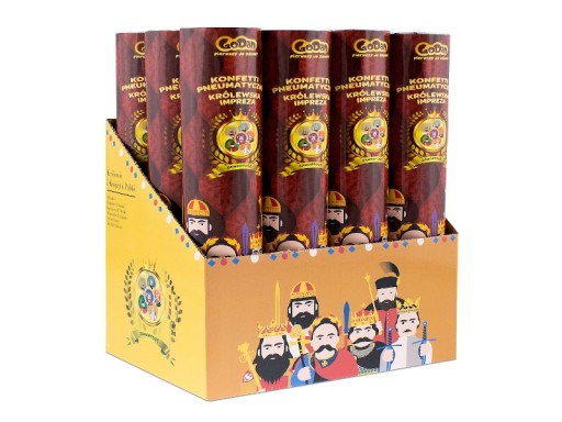 👑 Z tuby wylatują papierowe kółeczka z wizerunkami Króli.