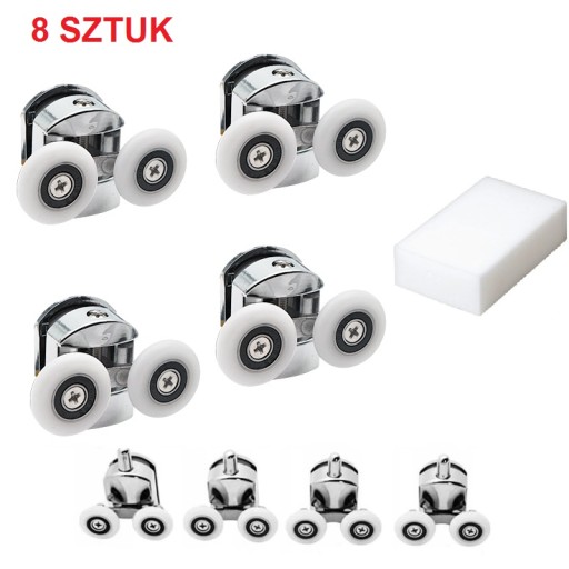KOMPLET ROLEK 8 SZT PODWÓJNYCH DO KABINY PRYSZNICOWEJ