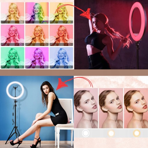 ➡️LAMPA PIERŚCIENIOWA KOLOROWA RGB DO TELEFONU MAKIJAŻU LED RING ZE STATYWEM⬅️