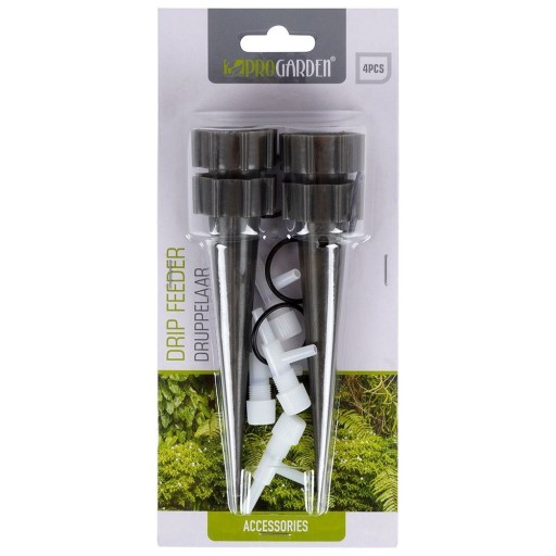 Zestaw czterech nawadniaczy do roślin. Nawadniacze montowane są na butelkę i pozwolą nam oszczędzić wodę, gdyż systemem kropelkowym same dozują odpowiednią ilość. Rozwiązanie to jest bardzo przydatne podczas upałów w okresie letnim, ale również w czasie wyjazdów na wakacje. Świetnie sprawdzi się w ogrodzie, na działce oraz balkonie. Oryginalny produkt holenderskiej marki ProGarden. Wyprodukowano zgodnie z europejskimi standardami.
