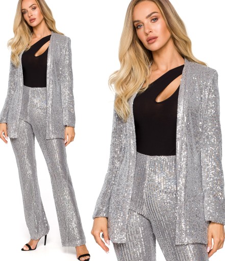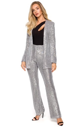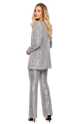 CEKINOWA MARYNARKA BEZ ZAPIĘCIA MOE724 w kolorze srebrnym