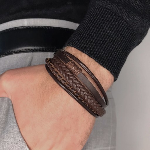 SKÓRZANA PLECIONA BRANSOLETKA MĘSKA