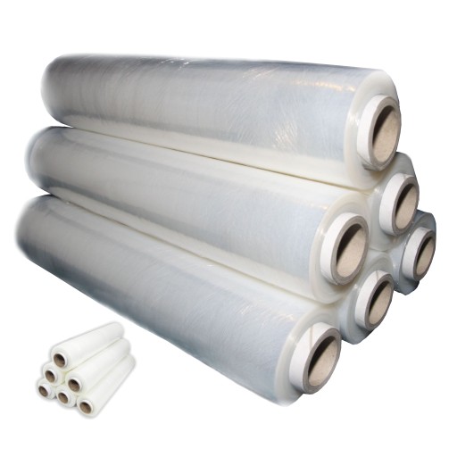 Folia stretch nawinięta na mocną grubą papierową tuleję standardowej średnicy wewnętrznej 50mm. Waga rolki 3kg brutto +-3%