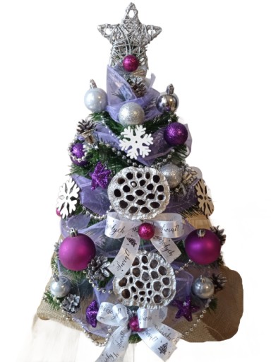 Wykonujemy choinki z dekoracją w kolorze: srebrnym, białym, złotym, niebieskim, czerwonym, brązowym, zielonym, fioletowym lub mieszanym.