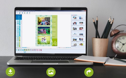 Dzięki aplikacji masz nieskończone możliwości w rozmieszczeniu własnych zdjęć na stronie. Posiadamy szeroką bazę klipartów, masek oraz ramek. Sam wybierzesz tło strony i umieścisz na niej dowolną ilość zdjęć.