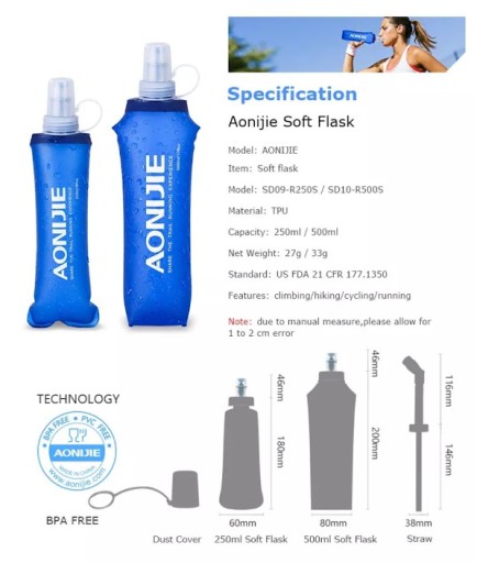 - z łatwością mieści się w większości kamizelek nawadniających, pasach lub kieszeniach plecaka. Miękki materiał dopasowuje się do każdej kieszeni, zapewniając wygodne noszenie.