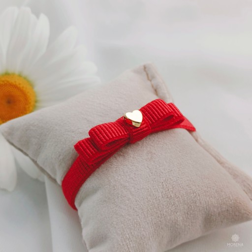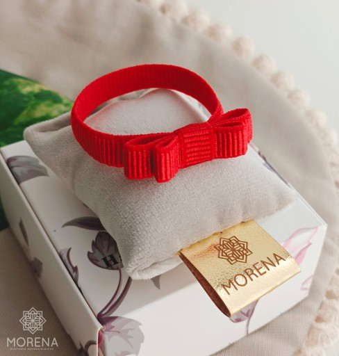 Pamiątkowa bransoletka czerwona kokardka dla niemowląt i starszych dzieci.