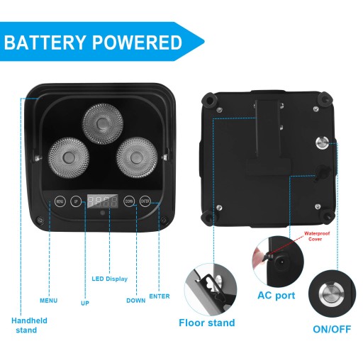 Tryb sterowania: 2.4G bezprzewodowy DMX512, master-slave, auto, aktywacja dźwiękiem, aplikacja Wifi, IR