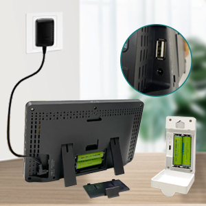 Jeśli stacja pogodowa używa zasilacza i zajmuje gniazdko, urządzenia zewnętrzne mogą wykorzystać wejście USB stacji pogodowej do ładowania.