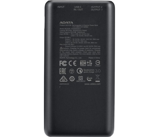 Power Bank ADATA P20000QCD w kolorze czarnym został wyposażony w dużą baterię 20 000 mAh, kompaktową obudowę i obsługę technologii Qualcomm QC 3.0 i USB Power Delivery 3.0. Naładuje Twoje urządzenie w mgnieniu oka.
