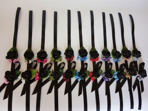 Na innej aukcji dostępne są pasujące do przypinek kotyliony na rękę dla pań.