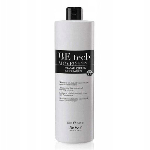 Be Hair Be Tech Moved 12 min to uniwersalny płyn do trwałej ondulacji. Formuła tego łagodnego płynu jest pozbawiona amoniaku. Dodatkowo wzbogacony w keratynę, kolagen i kawior jest łagodny dla struktury włosa, pozostawia włosy elastyczne, miękkie, nawilżone i pełne blasku. Płyn Be Hair Be Tech Moved 12 min działa już w 12 minut i może być stosowany w przypadku każdego rodzaju włosów.