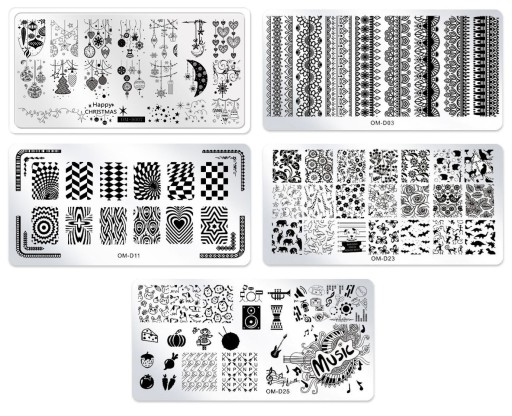 Zestaw 5 Blaszek do zdobienia paznokci metodą stemplową