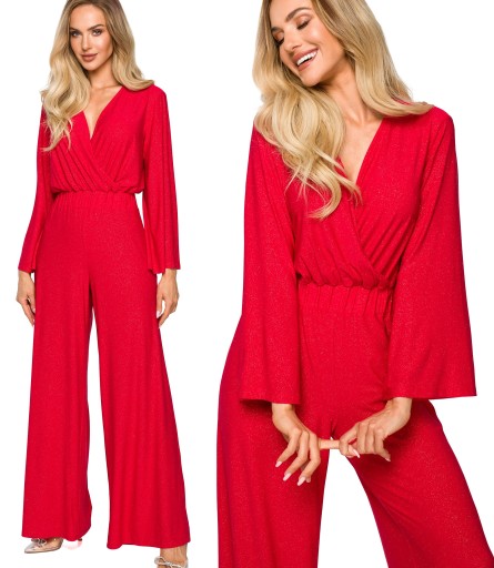 KOMBINEZON Z KOPERTOWYM DEKOLTEM MOE720 w kolorze czerwonym