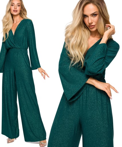 KOMBINEZON Z KOPERTOWYM DEKOLTEM MOE720 w kolorze szmaragdowym