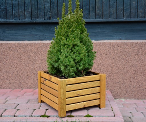 - Drewno malowane jest zanurzeniowo, preparatem który oprócz nadania koloru, impregnuje i zabezpiecza donicę przed działaniem warunków atmosferycznych.