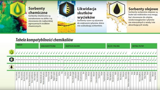 Zadaniem sorbentów jest kontrola i ograniczanie skutków wycieków substancji wodnych i oleistych. Są podstawowymi środkami chroniącymi pracowników i środowisko w trakcie wycieków.