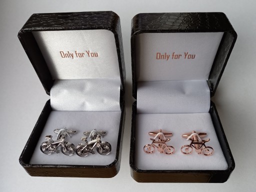 Zestaw pary spinek w postaci miniaturowych rowerów, kolarzówek w kolorze złotym, zapakowany w etui do spinek. Tak pięknie wykonane i opakowane spinki są idealnym pomysłem na niebanalny i ciekawy, ale także praktyczny prezent dla eleganckiego mężczyzny.