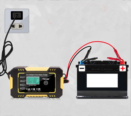 Profesjonalny prostownik do ładowania akumulatorów 12 V samochodów, motocykli, pojazdów rolniczych lub łodzi.
