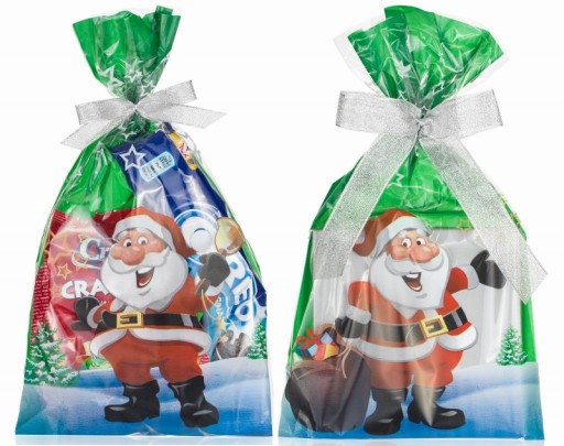 Woreczki z celofanu ozdobne z Mikołajem