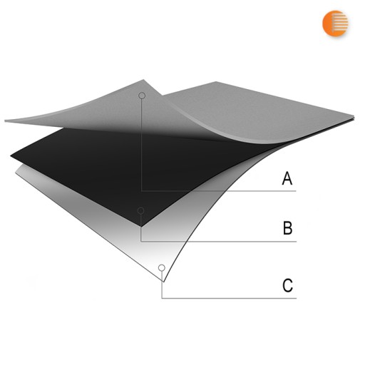 Roleta wykonana jest z gładkiej tkaniny składającej się z trzech warstw: