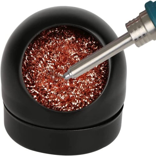Czyścik w metalowej podstawce do czyszczenia grotów lutownicy