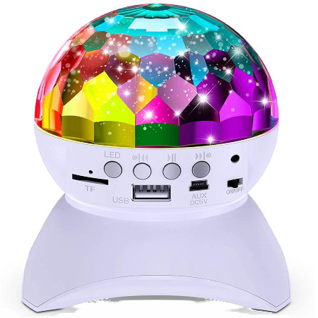 Kula disco projektor LED RGB wyposażona w najnowszy Bluetooth chip, dzięki czemu może łączyć się z telefonem komórkowym lub dowolnego Bluetooth włączone urządzenia. Ponadto kula dyskotekowa obsługuje karty SD, tryb USB i AUX, umożliwiając elastyczne użytkowanie.