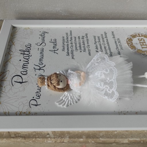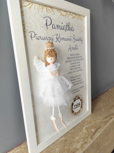 Prezent od chrzestnej Pamiątka I Komunii Św. anioł aniołek ramka 3d prezent
