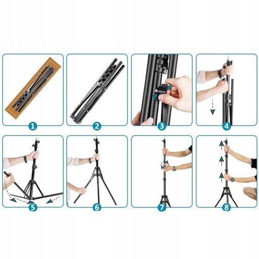 Wysokość statywu można regulować od 70 cm, aż do 220 cm.