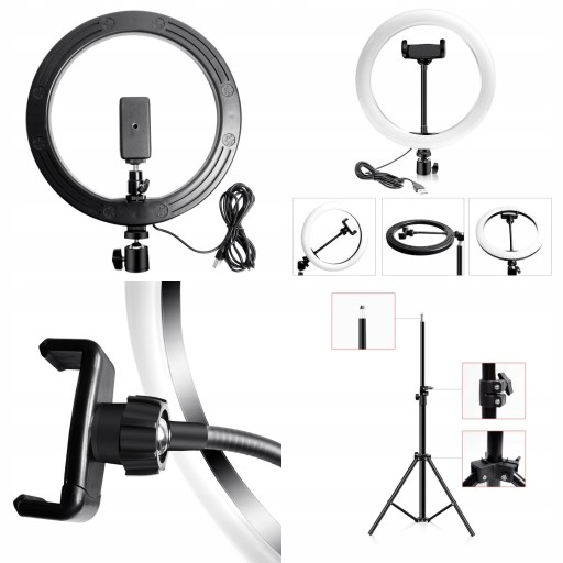 UCHWYT STATYW NA TELEFON LAMPA LED RING PIERŚCIENIOWA + PILOT NA KABLU