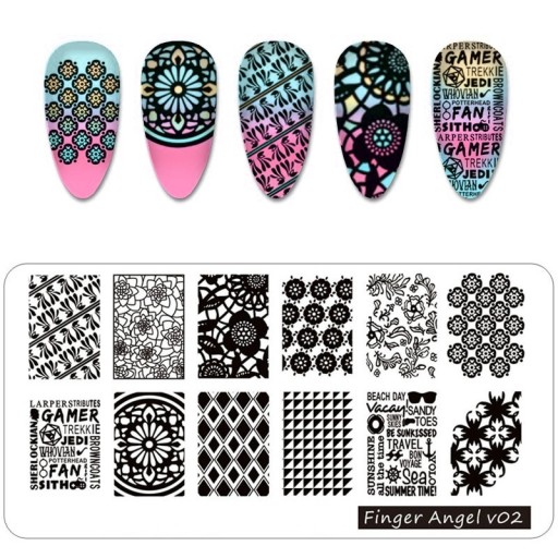 Zestaw 4 Blaszek Finger Angel do zdobienia paznokci metodą stemplową