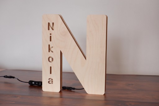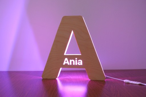 Podana cena dotyczy lampki w kształcie wybranej litery i wpisanym w literę imieniem lub napisem do 8 liter (więcej liter - za dopłatą) w stanie surowym - nie pomalowanej, nie polakierowanej.