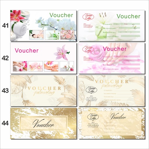 Voucher podarunkowy to dokument, który uprawnia posiadacza do korzystania z określonych usług, zabiegów lub umożliwia zakupy w Twojej firmie. Istnieją dwa podstawowe typy voucherów podarunkowych: kwotowe i usługowe. Wybór formy zależy tylko od Ciebie, co daje Ci dużą elastyczność w ich stosowaniu. Vouchery podarunkowe umożliwiają obdarowanemu realizację vouchera w dogodnym dla niego terminie (zazwyczaj od 6 do 12 miesięcy od dnia wystawienia).