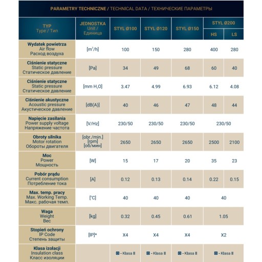 DANE TECHNICZNE WENTYLATORA Dospel Styl 120 S Standard 007-0003 P