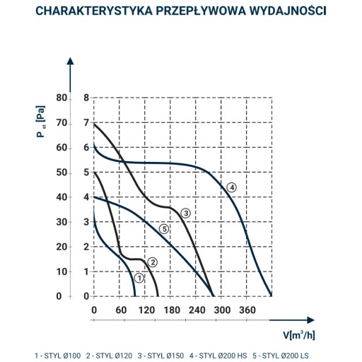 CHARAKTERYSTYKA WYDAJNOŚCI WENTYLATORA Dospel Styl 120 S Standard 007-0003 P
