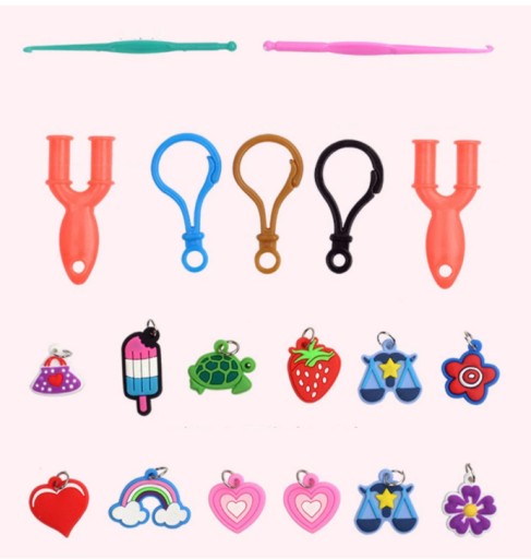 - 11 kolorowych gumowych zawieszek (charms)