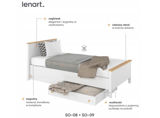 STORY SO-08 - łóżko z materacem bonelowym - biały/dąb nash