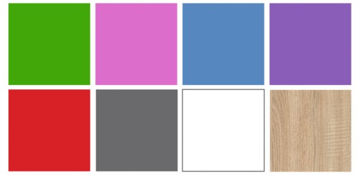 Biurko Smyk posiada uniwersalną kolorystykę oraz szeroką gamę kolorowych uchwytów, dzięki którym dopasujesz mebel do każdej