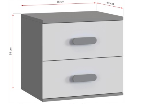 aranżacji. Posiada dwie pojemne szuflady z kolorowymi uchwytami.