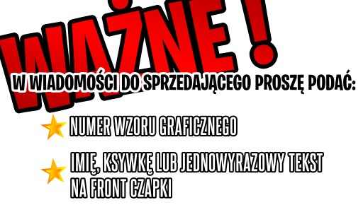 W PRZYPADKU NIE PODANIA WZORÓW ORAZ IMION W "WIADOMOŚCI DO SPRZEDAJĄCEGO" ZOSTANIE WYSŁANY PRZEDMIOT Z GRAFIKĄ Z MINIATURKI, BEZ NADRUKOWANEGO IMIENIA !