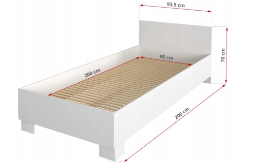 Łóżko zaprojektowane tak, by trafić w gusta przede wszystkim najmłodszych domowników. Charakteryzuje je prosta, minimalistyczna bryła, która idealnie wpasuje się w każde wnętrze. W zestawie znajduje się drewniany, rolowany stelaż pod materac.