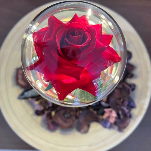 Szklana osłona zapewnia nie tylko lepsze efekty wizualne dla ludzi, ale również chroni wieczną różę od wewnątrz.
