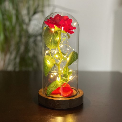 Wieczna Róża Zamknięta w Szkle to idealny, niestandardowy sposób na to, aby wyrazić swoje uczucia względem bliskich osób. Świetnie sprawdzi się jako prezent czy drobny upominek. Dodatkowo, stanowi piękną ozdobę i symboliczną pamiątkę. Delikatne oświetlenie LED w postaci diod o ciepłym odcieniu światła dodaje produktowi magii i uroku, a do tego pozwala rozświetlić wnętrze domu.