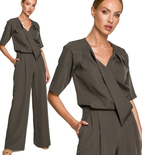 KOMBINEZON Z DEKORACYJNYM DEKOLTEM MOE703 w kolorze khaki
