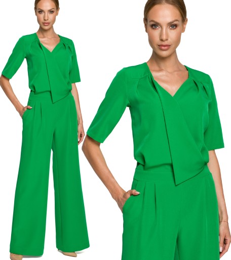 KOMBINEZON Z DEKORACYJNYM DEKOLTEM MOE703 w kolorze soczystej zieleni