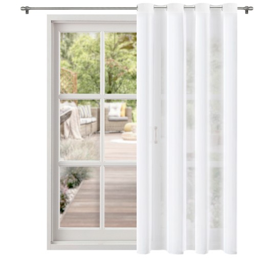Firana doskonale sprawdzi się w różnych pomieszczeniach. Bez względu na to, czy ozdabiasz okno w salonie, sypialni czy innym miejscu, ta gładka firana z białego woalu dodaje elegancji i stylu całej przestrzeni.