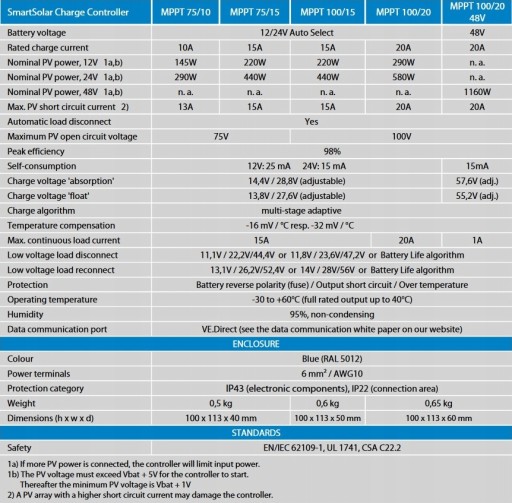 Ładowarka solarna zbiera energię z paneli fotowoltaicznych i magazynuje ją w akumulatorach. Dzięki zastosowaniu najnowszej i najszybszej technologii ładowarka SmartSolar maksymalizuje ilość pozyskiwanej energii i przesyła ją w inteligentny sposób w celu pełnego naładowania akumulatorów w jak najkrótszym czasie. SmartSolar zachowuje akumulator w dobrym stanie, wydłużając okres jego eksploatacji.